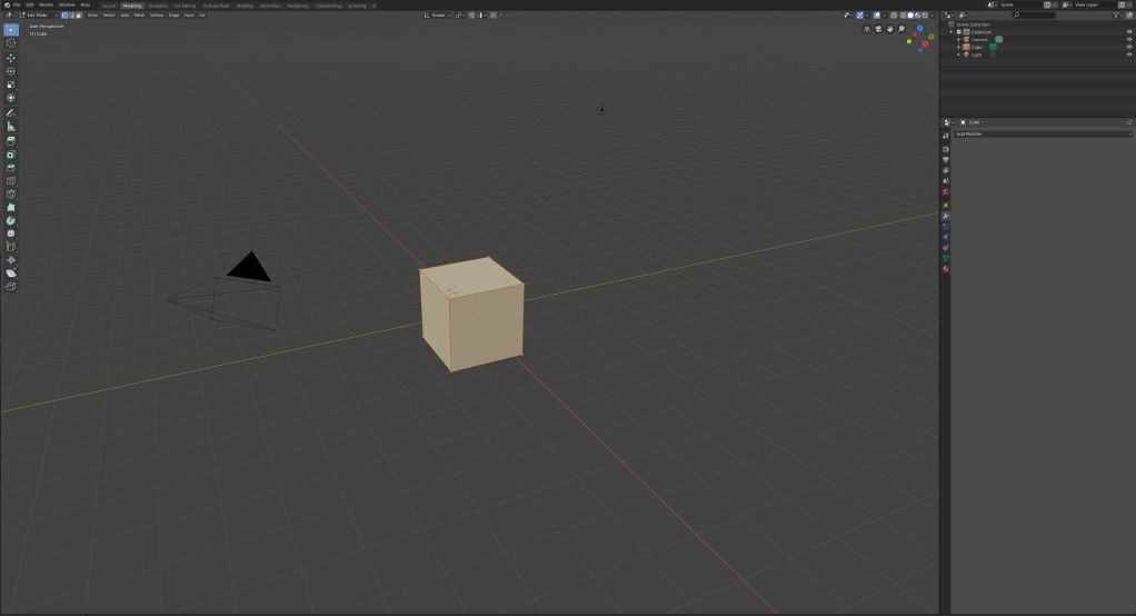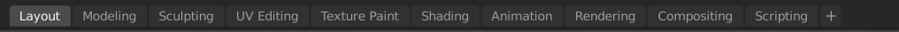 Die Layout Reiter finden sich im Blender UI in der oberen linken Ecke. Wie bereits erwähnt öffnet sich Blender Standartmäßig im „Layout“ UI Layout (Ja die Namensgebung ist verwirrend). Für ein näheres Verständnis klicken wir einfach mal auf den „Modelling“ Reiter.