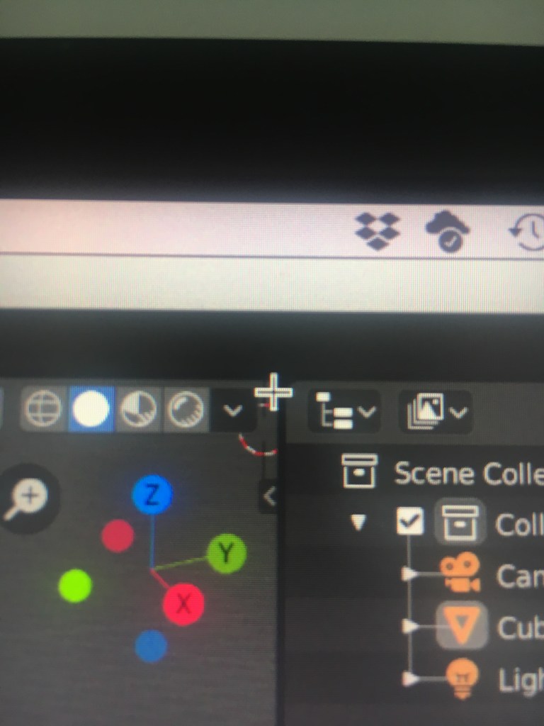 Nehmen wir an, wir wollen tatsächlich zwei 3D Viewports haben, aber keinen bestehenden Block dafür verändern. Um das zu erreichen können wir einen neuen Block erstellen, indem wir mit der Maus in die obere rechte Ecke eines Blocks hovern (also nur darüber bewegen, nicht klicken) und darauf achten, dass aus dem Mauszeiger ein kleines Kreuz wird: